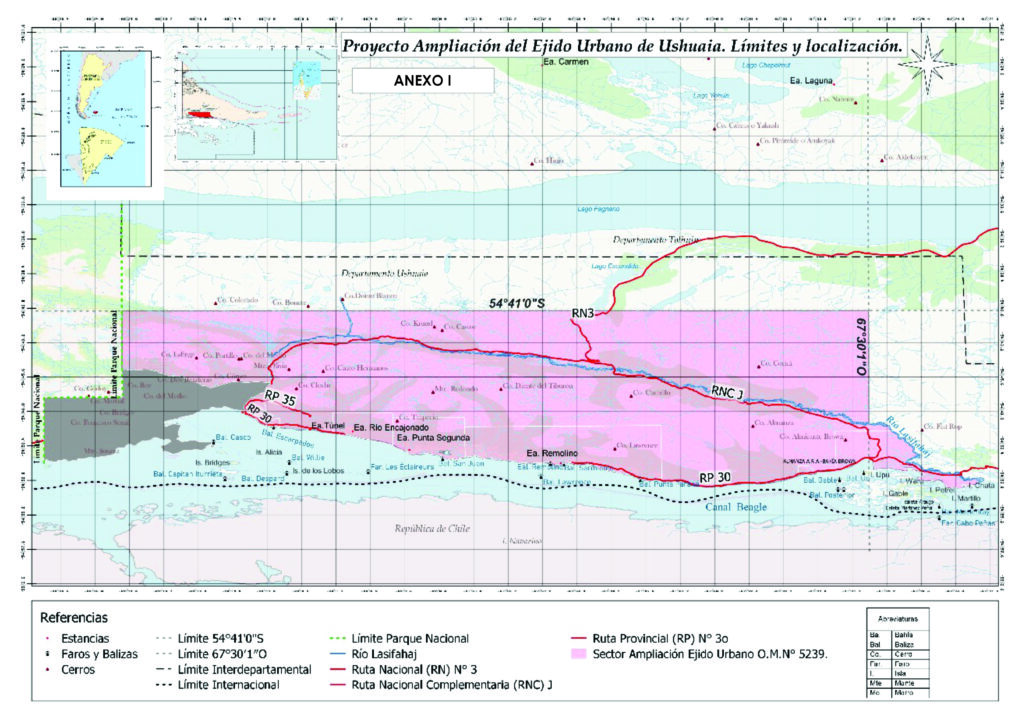 El presente Proyecto de Ley tiene como objetivo la ampliación del ejido urbano de la ciudad de Ushuaia con la finalidad de generar un nuevo circuito económico, productivo y habitacional a corto, mediano y largo plazo.