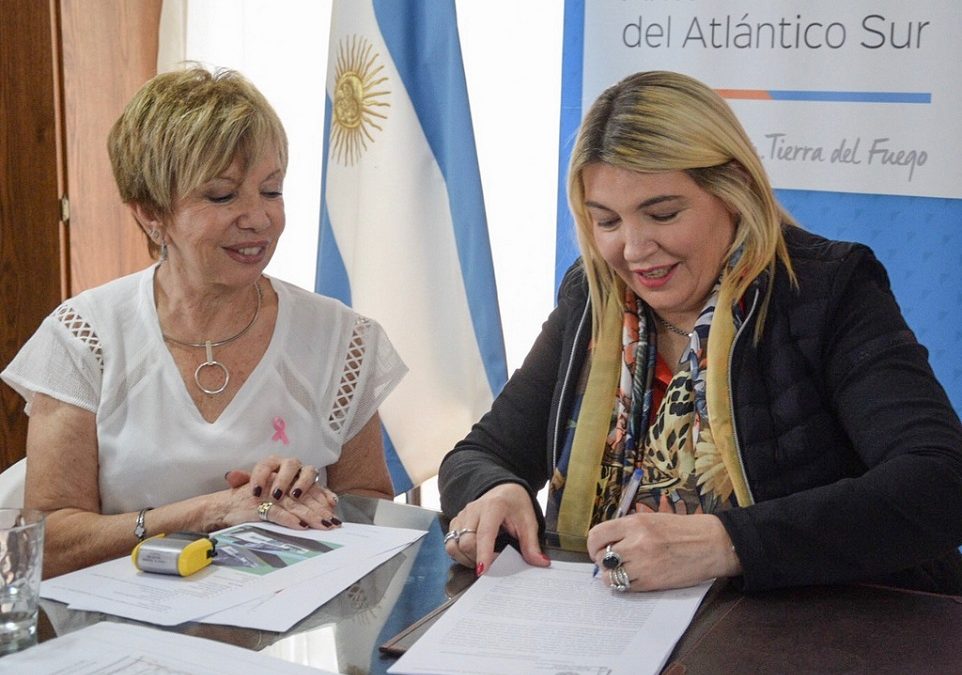 La gobernadora Rosana Bertone presidió –este jueves- el acto de firma del convenio para la ejecución de la obra de ampliación del edificio de Lucha Contra el Cáncer Ushuaia (LUCCAU), en un acto del que participaron, además, la presidente de la institución Adela Recalde; los ministros Leonardo Gorbacz (Jefatura de Gabinete), Guillermo Ruckauf (Salud) y Luis Vázquez (Obras y Servicios Públicos); el secretario general de Gobierno, Juan D’angelo; y el titular de la clínica San Jorge, Carlos Sánchez Posleman.