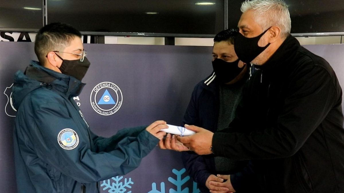 La Municipalidad de Ushuaia, por medio del secretario de gobierno, Pablo García y del concejal Gabriel De la Vega hicieron entrega en nombre del intendente Walter Vuoto de las medallas de reconocimiento a los “Ciudadanos Destacados” de la ciudad, a los trabajadores y las trabajadoras municipales de Defensa Civil. Durante la jornada se entregaron las medallas a los trabajadores provinciales y municipales y se continuará en los próximos días con las fuerzas de seguridad, personal de salud y trabajadores esenciales.