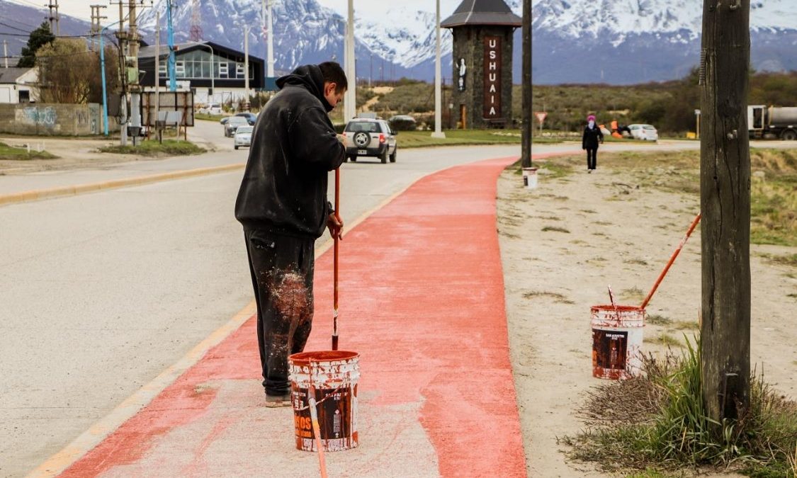 La Municipalidad de Ushuaia lleva adelante trabajos de embellecimiento en la ciudad con tareas de reparación y pintura de veredas por parte de cuadrillas de Servicios Públicos y la colocación de plantines y arbustos que realizan trabajadores y trabajadoras de Parques y Jardines.