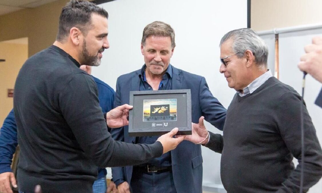 El Intendente de la ciudad de Ushuaia, Walter Vuoto, acompañó la presentación del libro “A 40 años de la guerra de Malvinas. Historias desde el Atlántico Sur”, a cargo del Secretario General de la Unión de Empleados de la Justicia de la Nación (UEJN), Julio Piumato, y del presidente del Departamento Malvinas y Asuntos del Atlántico Sur de la UEJN, Dr. Isidoro Aramburu. Estuvieron presentes también en el salón del Instituto Provincial de Regulación de Apuestas (IPRA), la Legisladora Provincial Victoria Vuoto, el Jefe de Gabinete Omar Becerra, el Secretario de Malvinas, Daniel Arias, la Secretaria de Gobierno, Yésica Garay, y la embajadora de la ciudad de Ushuaia, VGM Mariana Soneira.